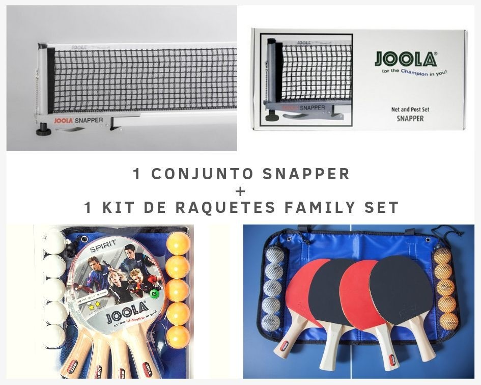 1 Conjunto Snapper de rede e suporte para tênis de mesa + 1 Conjunto de raquetes de tênis de mesa Family Set (maleta com 4 raquetes e 10 bolas)