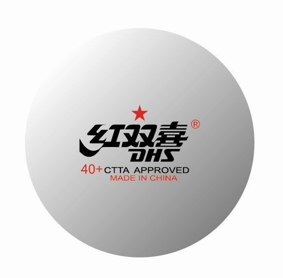 Caixa com 100 unidades da bola DHS 40+ 1 estrela. Nova bola oficial do tênis de mesa, fabricada de plástico.