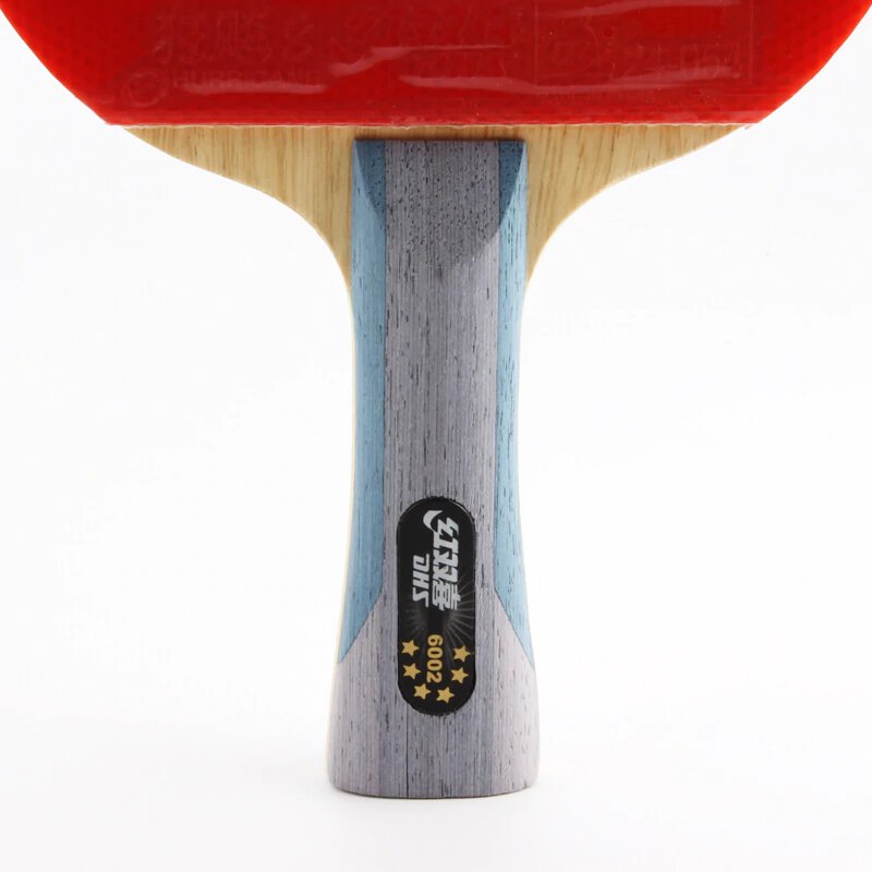 Raquete profissional equipada com as borrachas DHS Hurricane 8 e DHS Tin Arc, ambas com espessura 2,15 mm (max). Conjunto acompanha capa de proteção. A Hurricane 8 é uma borracha mais dura, rápida e bastante pegajosa, enquanto a Tin Arc é mais macia e com excelente elasticidade. As duas borrachas possuem bastante efeito. A madeira DHS possui 5 camadas, todas de madeira, com grande resistência. Produto original. Não acompanha caixa.