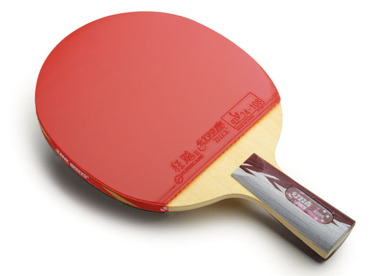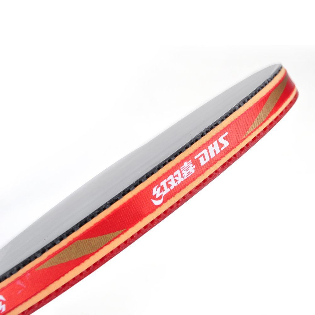 Raquete semiprofissional equipada com as borrachas DHS Hurricane 3 (preta) e DHS G888 (vermelha), ambas com espessura 2,15 mm (max). A Hurricane 3 é uma borracha mais dura e rápida, enquanto a G888 é mais macia e com boa elasticidade. As duas borrachas possuem bastante efeito. A madeira DHS possui 7 camadas, todas de madeira, com grande resistência.