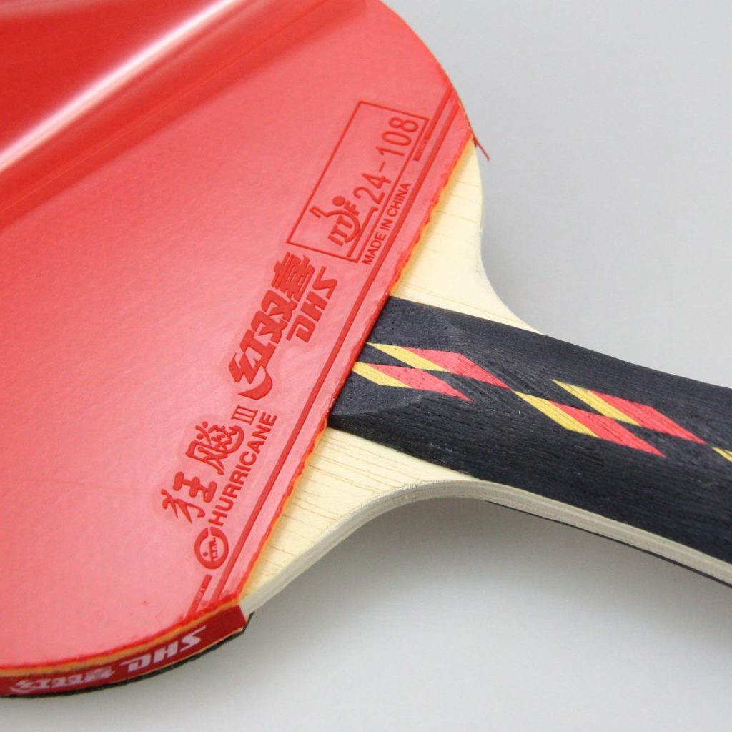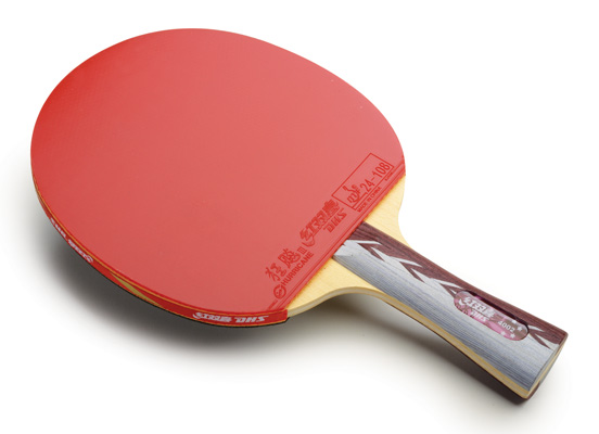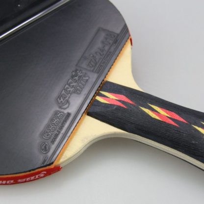 Raquete semiprofissional equipada com as borrachas DHS Hurricane 2 (preta) e DHS G888 (vermelha), ambas com espessura 2,15 mm (max). A Hurricane 2 é uma borracha mais dura e rápida, enquanto a G888 é mais macia e com boa elasticidade. As duas borrachas possuem bastante efeito. A madeira DHS possui 7 camadas, todas de madeira, com grande resistência.