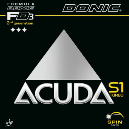 Donic Acuda S1 Turbo é uma borracha de exatidão desenvolvida para uma precisão em bolas de alta velocidade. Apesar de a borracha ser dinâmica e rápida, ela tem a perfeita sensibilidade.
