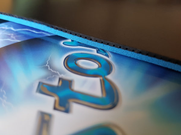 Uma borracha com topsheet (superfície externa) mais fina e submetida a alta tensão abre espaço para uma esponja mais grossa, gerando energia e velocidade extra. A série Donic Bluestorm oferece uma aceleração visivelmente maior, mantendo suas características de efeito e velocidades. A linha Bluestorm é oferecida com esponja de 1,9 mm, 2,1 mm – e a variação mais grossa é chamada de Max+, pois esta esponja é ainda mais espessa que as versões máximas anteriores (que era 2,2 mm).