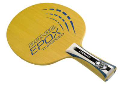 A mais rápida de todas as raquetes da linha Donic EPOX (as camadas da raquete são unidas com resina epóxi e não com cola, formando um conjunto uno).