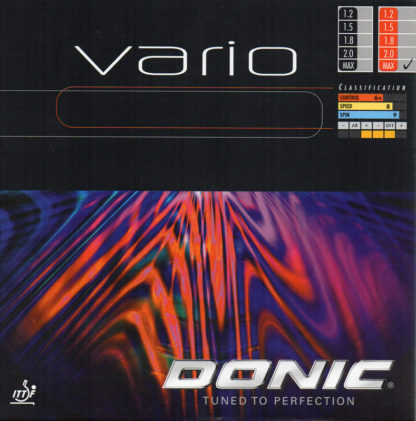 Donic Vario é uma borracha com excelente custo benefício, indicada para jogadores que procuram suas primeiras borrachas profissionais com um custo mais acessível.