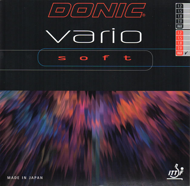 Donic Vario Soft: borracha com esponja macia, de alta aderência. Modelo Soft proporciona bastante controle, precisão e ótimo efeito.