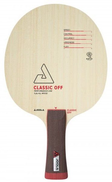 O JOOLA Classic Off oferece grande controle e um toque extra de velocidade. A construção em 5 camadas apresenta folheados externos Koto dinâmicos , folheados médios Spruce e m núcleo Candlenut sensível . O JOOLA Classic Off oferece muito potencial ofensivo, ótimo desenvolvimento de giro e resposta de bola agradável. É a escolha ideal para o jogador de ataque variável!