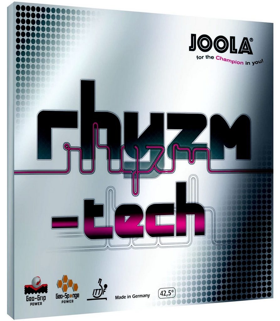 A borracha JOOLA RHYZM-TECH foi novamente projetada com poros consideravelmente maiores, uma real máquina de catapulta foi desenvolvida. A JOOLA RHYZM-TECH é uma borracha que suporta qualquer resposta de rotação em todas as situações e, portanto, dá a todos os jogadores ativos um impulso extra.