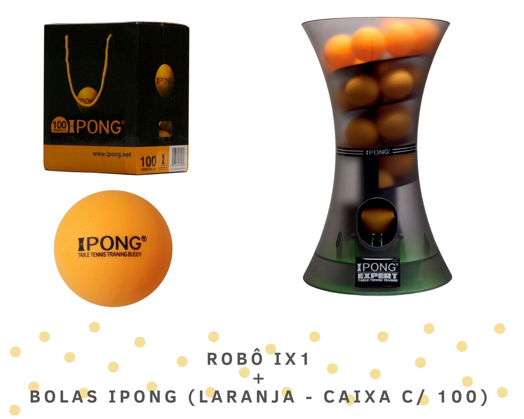 O conjunto de bolas Ipong para tênis de mesa consiste em um conjunto de 100 bolas de 40mm para treino, acondicionadas em uma caixa que facilita seu transporte.