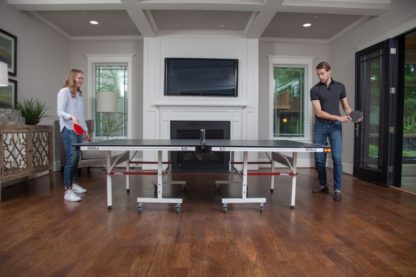 A JOOLA Rapid Play é ideal para quem quer um jogo divertido com uma mesa com estilo. Com um tampo na coloração preto carvão, cantos com porta bolas e um placar ábaco magnético, essa mesa com certeza vai chamar atenção em casa, no clube, escritório ou qualquer outro lugar. A mesa também inclui um conjunto de suporte e rede simples de se instalar e de fácil ajuste.