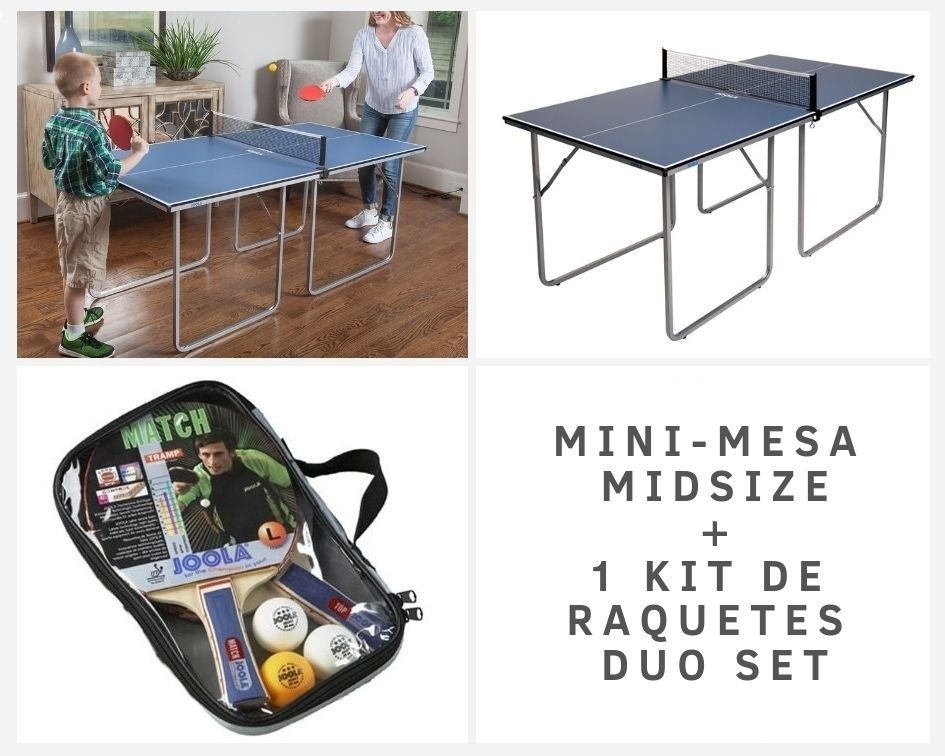 A mesa Joola Midsize é perfeita para todos que amam tênis de mesa mas possuem um espaço limitado. A mesa tem a mesma altura da mesa oficial de tênis de mesa, no entanto o seu tamanho equivale a dois terços da largura da mesa oficial. Cada metade da mesa possui um tamanho bem próximo a um quadrado, sendo assim a mesa pode ser usada para jogar baralho e muitas outras coisas. A Midsize é fácil de montar e armazenar. Medidas da mesa aberta (montada) em centímetros: 172,88 comp x 91,44 larg x 76,2 altura