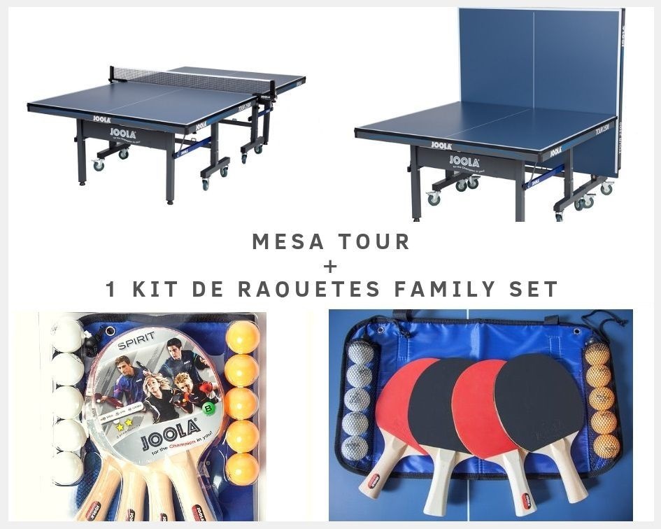 Mesa oficial Joola Tour 2500 (25mm) + 1 Conjunto de raquetes de tênis de mesa Family Set (maleta com 4 raquetes e 10 bolas)