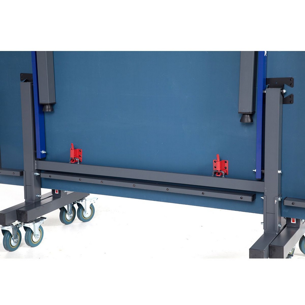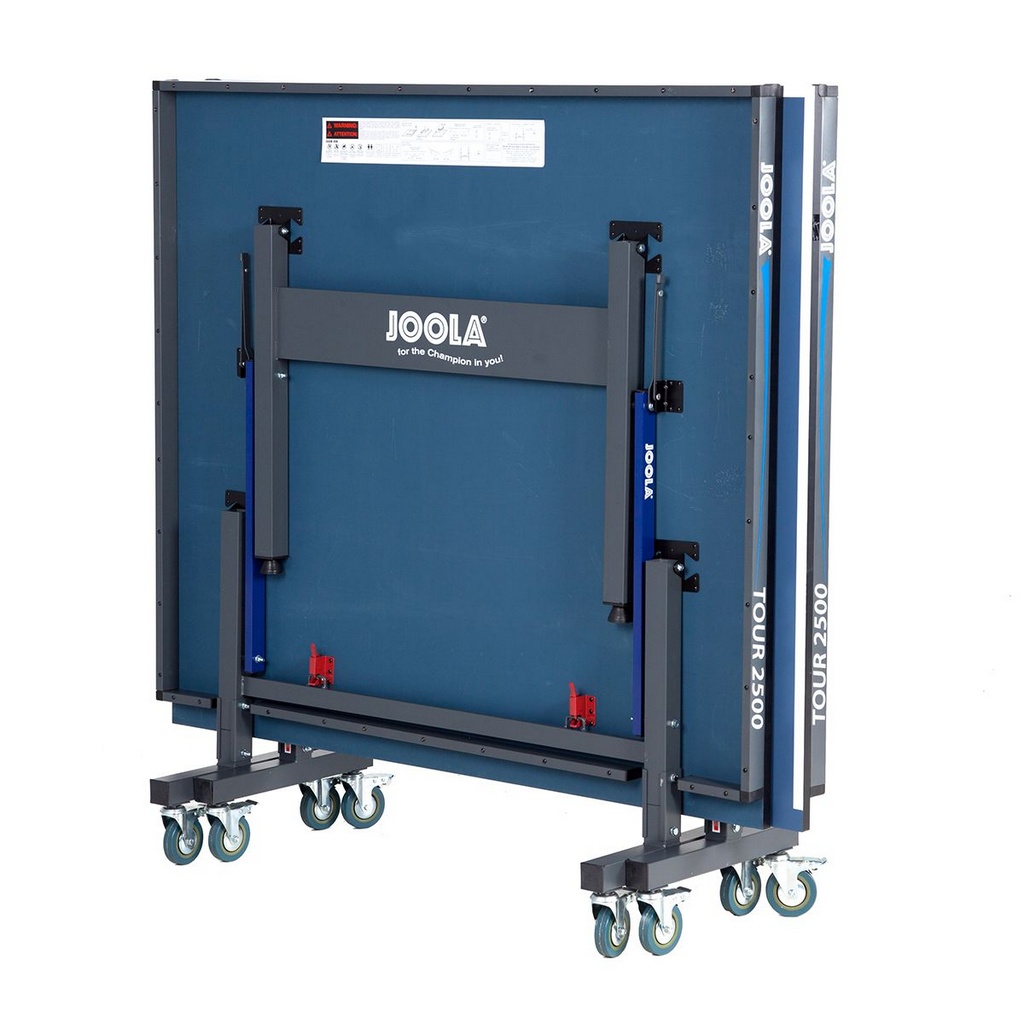 A mesa Tour 2500 apresenta uma superfície de 25mm pintado em azul e 50mm de estrutura de aço com revestimento em pó preto. A superfície de 25mm garante pingos de bola mais consistentes. Cada metade da mesa possui pernas dobráveis automáticas e quatro rodas com travas. Um dispositivo de anti-inclinação está incluído para maior segurança.