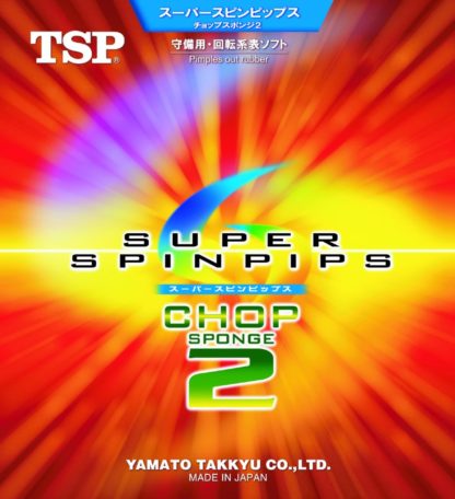 O Super Spinpips Chop 2 é equipado com uma esponja extra-macia e tem uma superfície que permite golpes pesados de deseja com backspin (efeito para baixo). Sua nova esponja absorve grande parte da energia dos ataques do oponente, proporcionando o máximo de controle e efeito. Este modelo também permite golpes rápidos de ataques próximo à mesa. Tudo que um defensivo moderno precisa.
