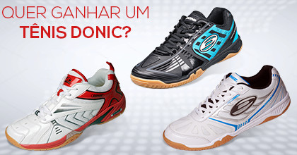 Até o dia 28 de fevereiro, a cada R$ 200,00 (duzentos reais) em compras de produtos Donic você receberá um cupom (número) e concorrerá a um tênis Donic. Quem já comprou entre 1º e 8 de fevereiro estará automaticamente concorrendo. O vencedor escolherá qualquer um dos 3 modelos disponíveis: Donic Targa Flex IV, Waldner Flex II ou Ultra Power.