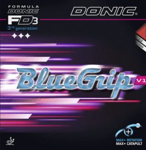 Tem uma camada externa de estilo chinês pegajosa em combinação com uma esponja azul de efeito catapulta. Especialmente recomendada para jogadores que usam topspin e que preferem atacar com o forehand. Graças à sua superfície aderente, BlueGrip V1 também é adequada para jogadores que buscam mais controle e para kateiros (estilo defensivo) que ocasionalmente gostam de atacar com muito efeito e executar contra-ataques a meia distância. Borracha fabricada na Alemanha.